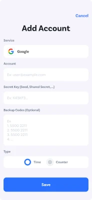 5. Backup Options: Your accounts are invaluable, and while our app does not support cloud backup or device-to-device transfer, you can manually keep track of your account settings to ensure you maintain access to your 2FA authentication codes.