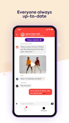 What time do you have to be there? Where to park? Which measures apply? No stress! The app contains all relevant event information in a clear overview. Everyone in the group will receive updates and helpful reminders.