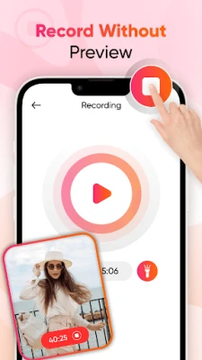 Record videos in the background with the screen off. Supports both front and rear cameras. Perfect for long-duration or discreet recordings. Easy-to-use interface for quick video capture. Continue using your device while recording. Saves videos directly to the app gallery.