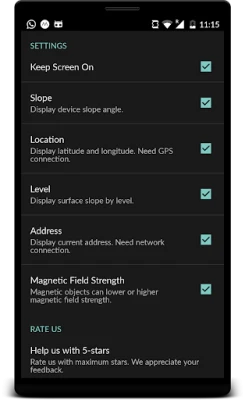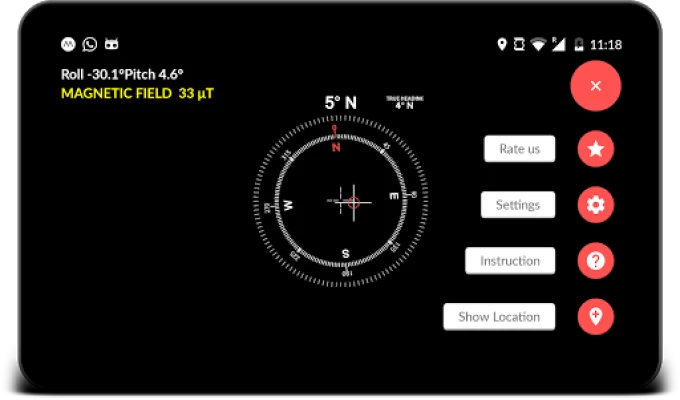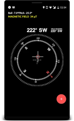 - Compass with elevation shows you device slope, horizontal level, device's true heading