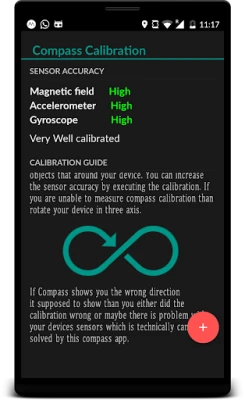 - Wave your device in the figure of 8 as described in the instruction page of Compass. This will initialize the magnetic sensor of your smartphone.
