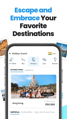 Plan your next extravagant journey seamlessly with EaseMyTrip, India’s fastest-growing travel app with over 20 million users. Discover the world of unparalleled travel solutions with us at unbeatable prices in just a few clicks Whether you're looking to book flight tickets, hotels, holiday packages, buses, cabs, cruises, or trains, you can book them all instantly in just a few minutes at your convenience.