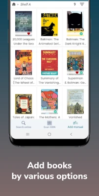 + Add books to your library catalog through ISBN scanning, online searches, or manual entries.