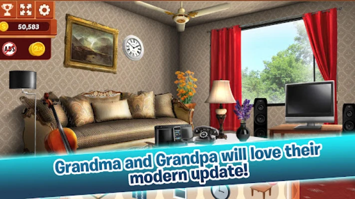 Behind the white picket fence lies a quaint old house with a FUN jam packed hidden object adventure. Emma’s Grandparents' old house needs a home makeover! Okay...a LONG awaited makeover! Exchange old paint for dazzling wallpaper, outdated furniture for more modern pieces and more! Return this house back to its old glory!