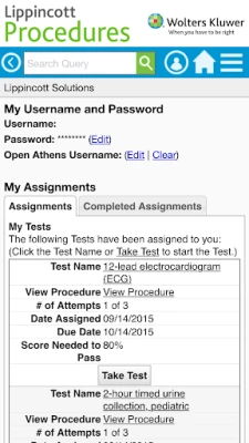 • Access to assigned skills competency tests and checklist evaluations, when signed in via username/password