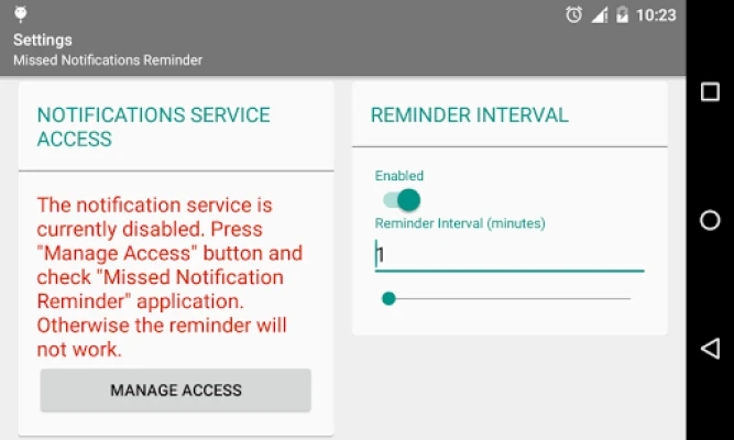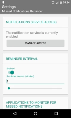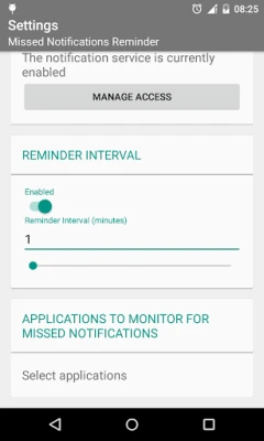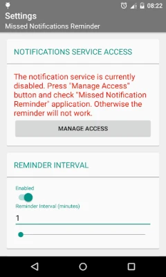 Just launch app, allow it to receive notification events, select reminder interval and important applications. That's it. If there are any unhandled notifications from thet selected apps in the statusbar, app will notify You periodically with the notification sound you choose.