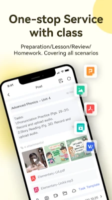 -Slide, doc, audio, and video, rich file types are supported in the online classroom