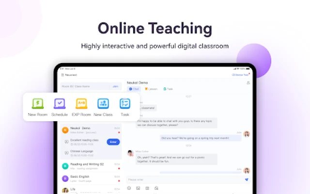 Neukol is the best choice for real-time online classroom for Education, Vocational Training, and Corporate Training. Support up to 100 people to join the online classroom on iPad, iPhone, other mobile devices, Windows, and Mac.