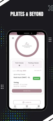 Easily book your pilates sessions, view upcoming bookings, cancel classes, and check available time slots – all in just a few taps.