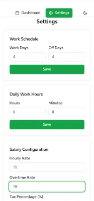Manage your work time and salary effortlessly with Salary Tracker. This app helps employees and freelancers keep track of their daily working hours, calculate their total monthly salary, and monitor their performance over time.
