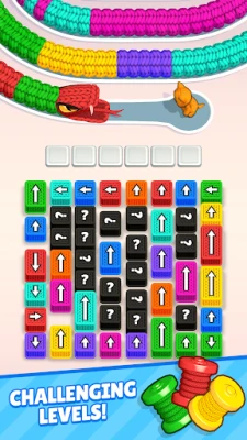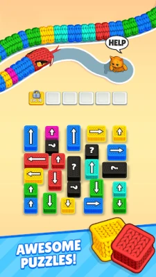 Snakes are invading! It's up to your team of stylish cat heroes to stop them using color-matching threads and clever unblocking strategy. Deploy powerful threads from color-coded boxes and destroy matching snake segments before they reach your base!
