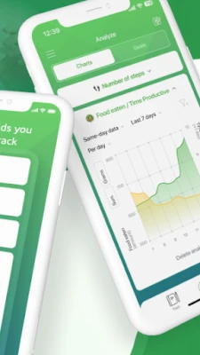After you tracked data, you can display it in timelines or nice pie & bar charts.