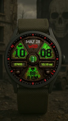 Gaming radioactive watch face for wear OS computer game lovers will appreciate this design on their watches, it is universal and suitable for every day be it gaming events or exhibitions, enjoy friends